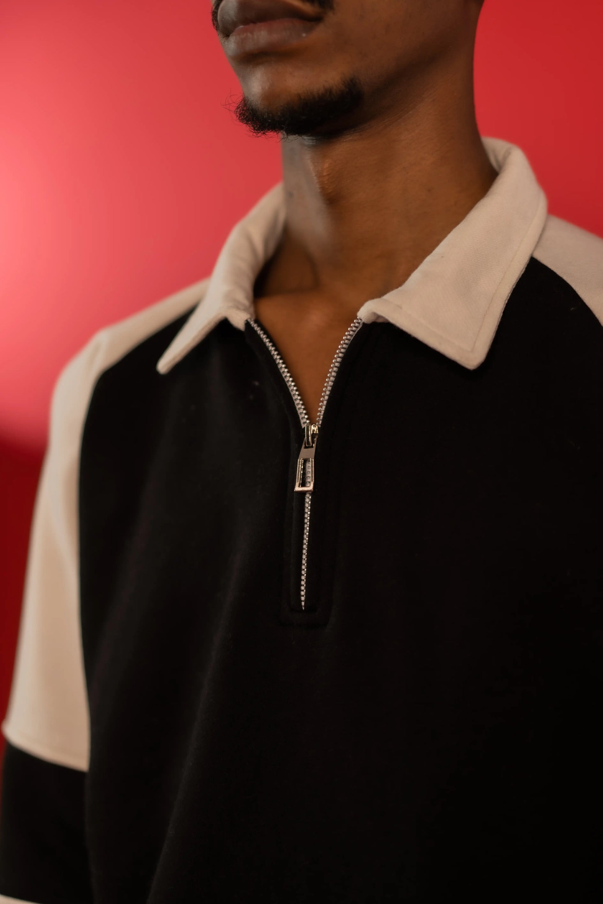 Raglan sleeves contrast polo zipper
